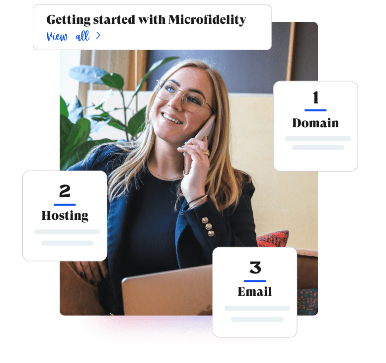 Starting with Microfidelity is fast and fully guided. Secure your domain, choose a hosting plan, set up your email, and launch your website — all from one seamless platform.